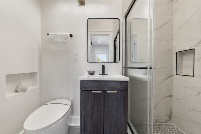 A half bath can be small but impactful. We maximize space, improve functionality, and add stylish fixtures.